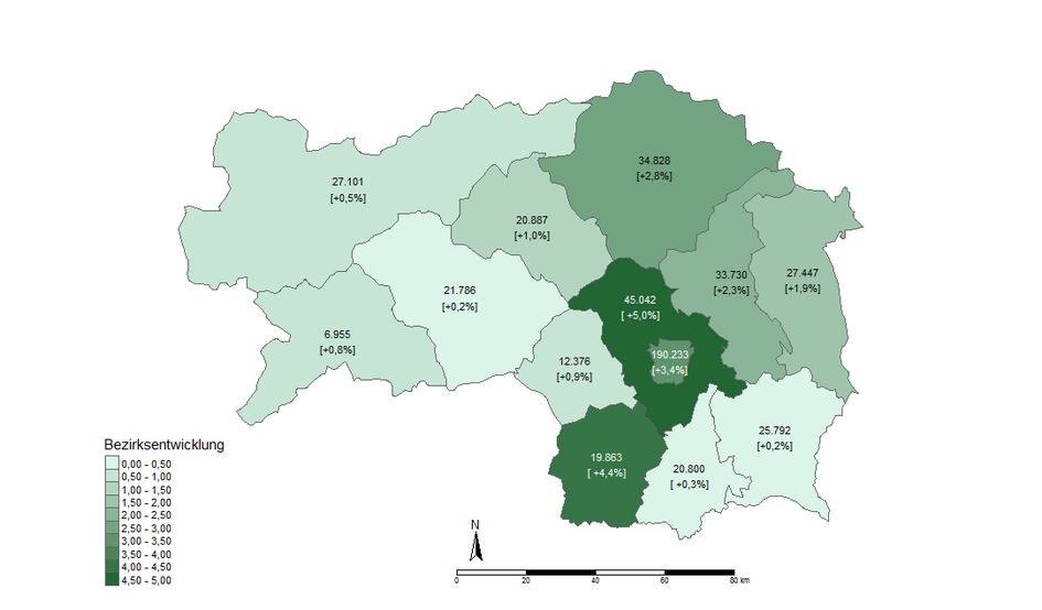 Die positive Beschäftigungsentwicklung in der Steiermark wurde im Jahr 2017 überwiegend vom Großraum Graz (Bezirke Graz, Graz-Umgebung) getrieben. Hier stieg die Zahl der Aktivbeschäftigten im Vergleich zu 2016 im Jahresdurchschnitt um +3,7% oder +8.401 Beschäftigungsverhältnisse. Damit gingen fast 70% des gesamtsteirischen Beschäftigungswachstums auf den Großraum Graz zurück.