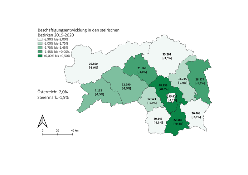 April 2021: Beschäftigungsentwicklung in den steirischen Bezirken 2020